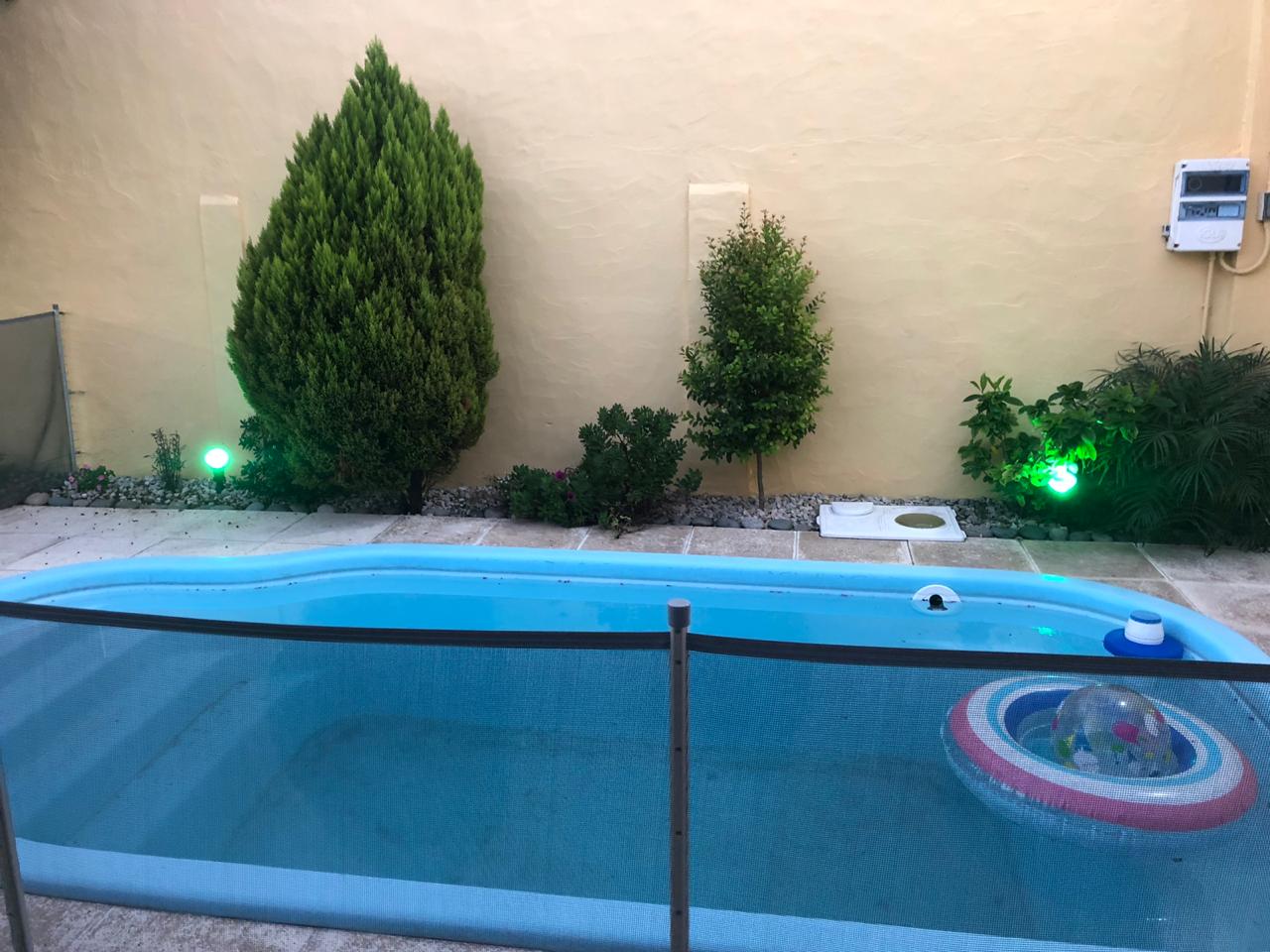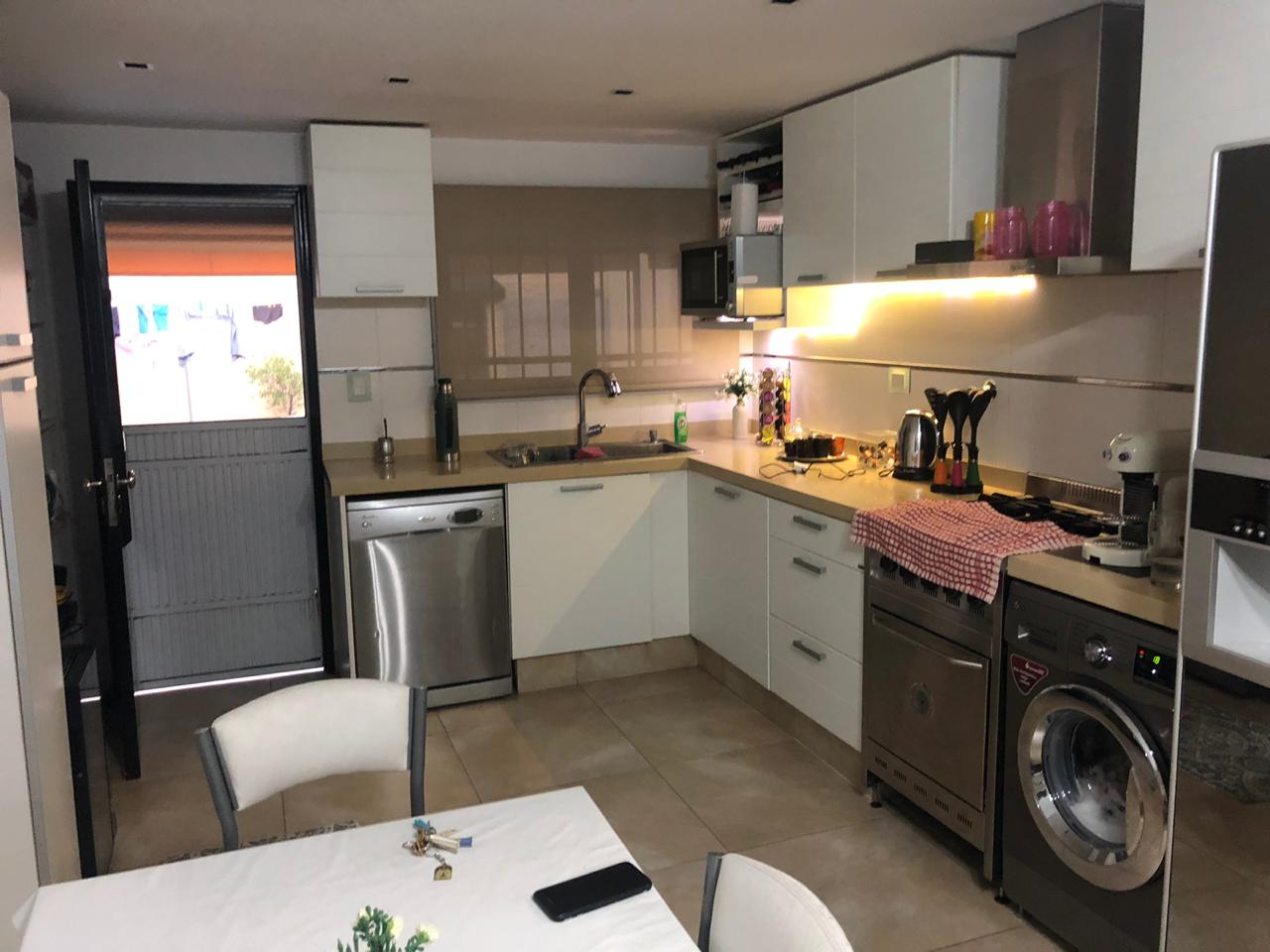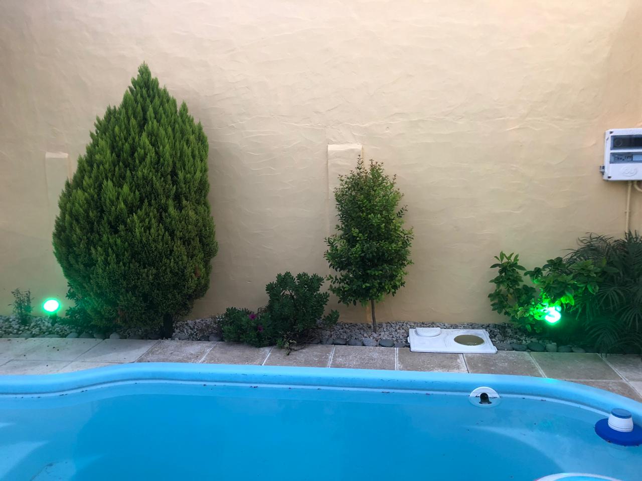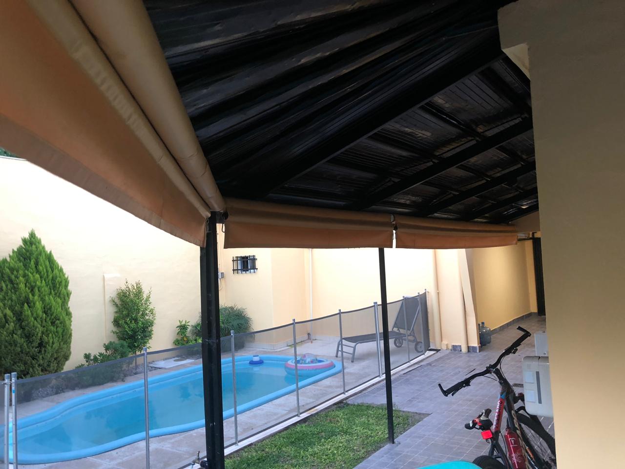 2 dormitorios c/ placard, living, coc/com, 2 baños, e/ de auto y garage, patio c/ piscina y lav. Cubierto.