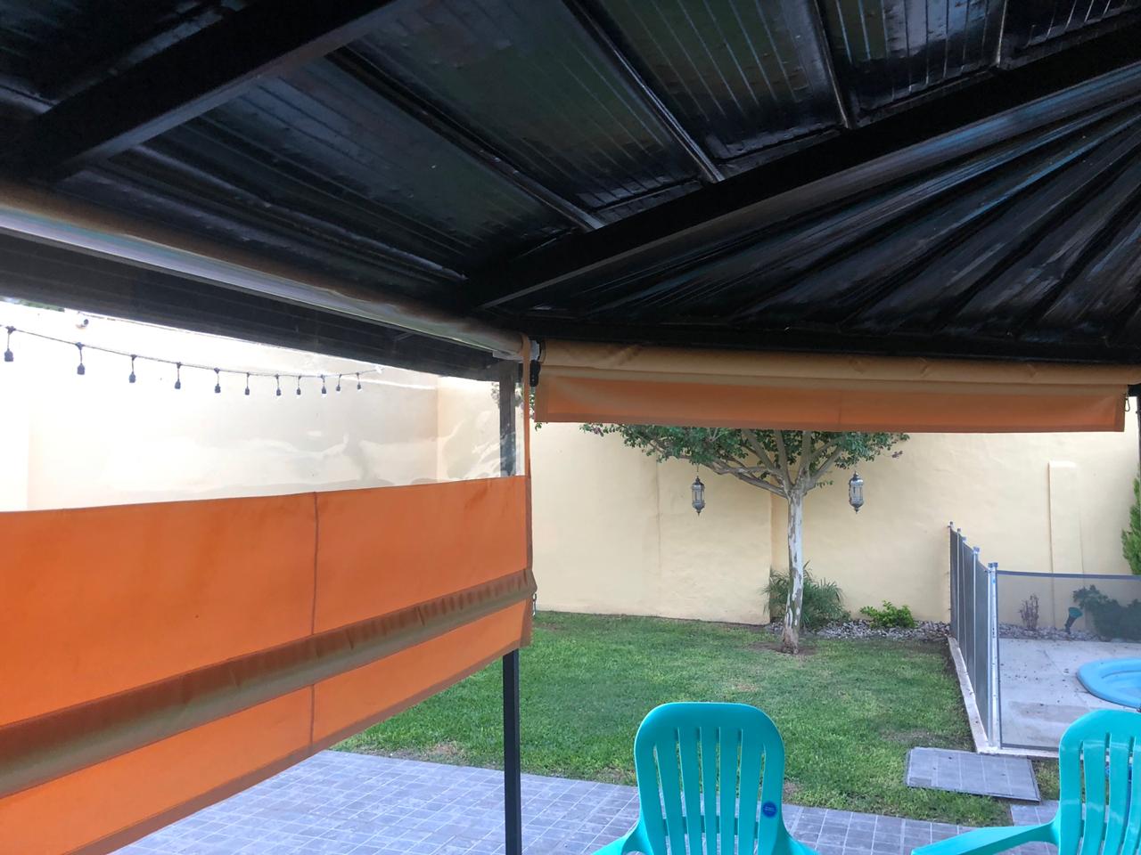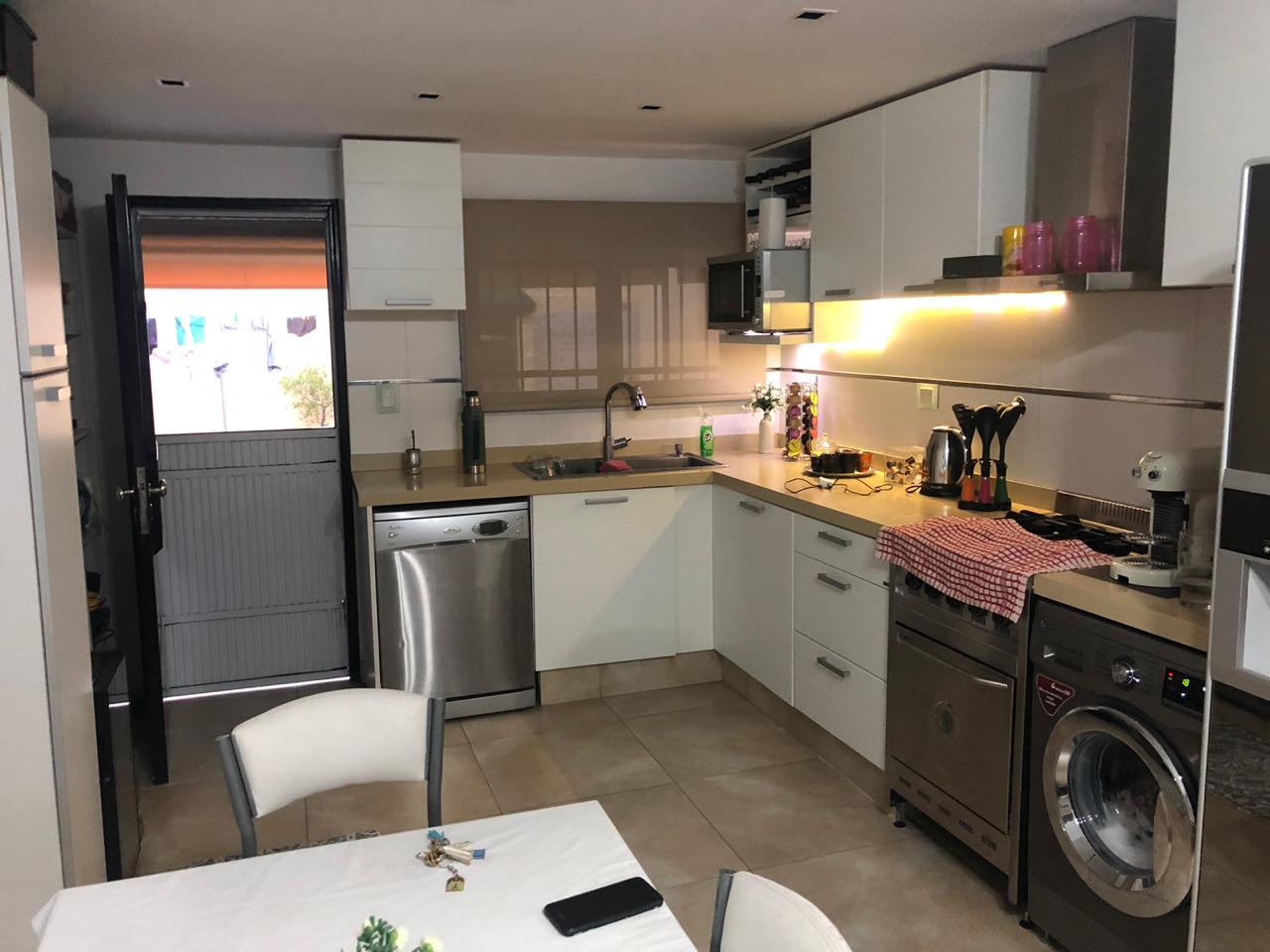 2 dormitorios c/ placard, living, coc/com, 2 baños, e/ de auto y garage, patio c/ piscina y lav. Cubierto.