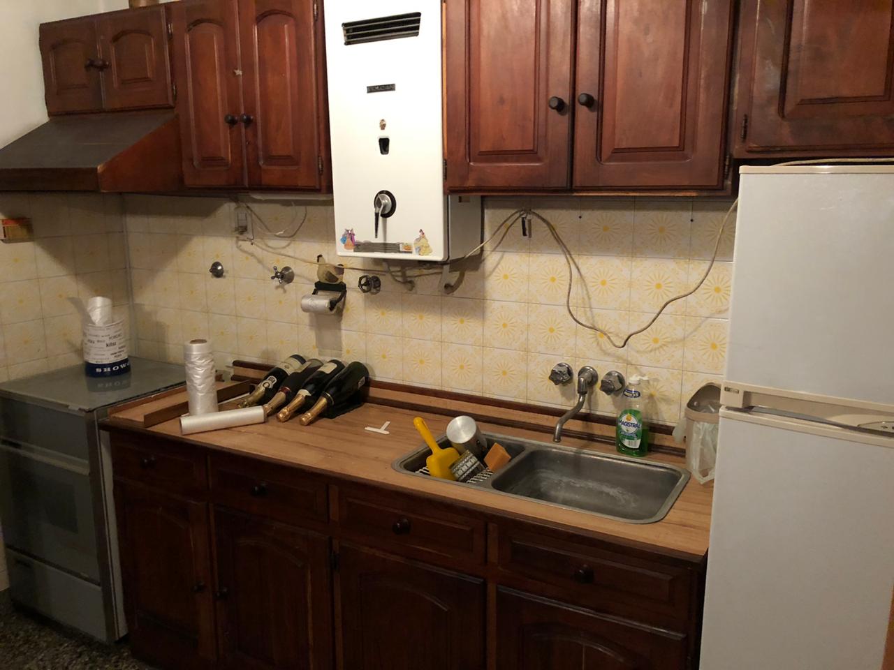 2 dormitorios, living, coc/com, 2 baños, patio y terraza, garage p/ 2 autos.